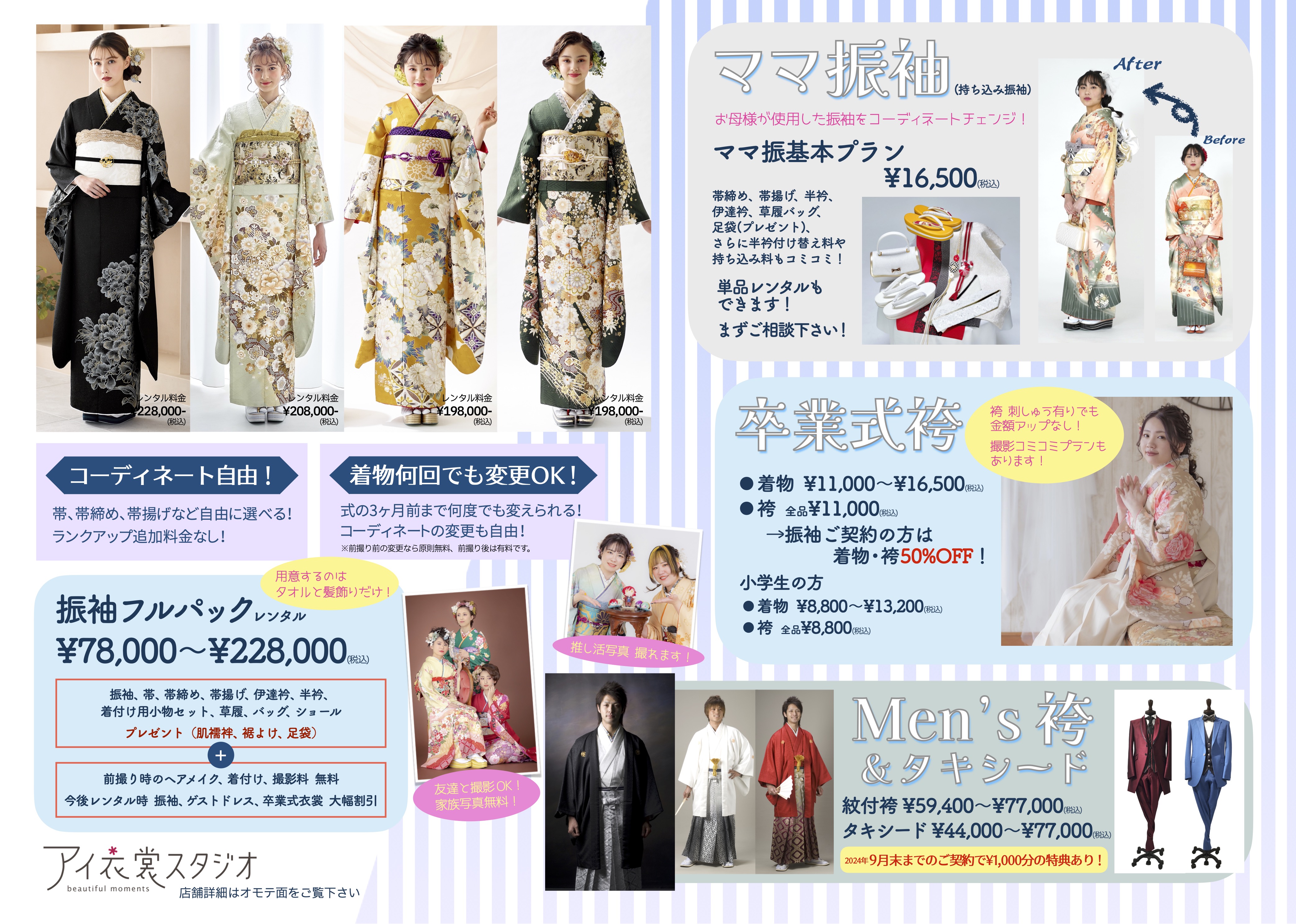※ 振袖をお召しになるお嬢様ご本人の来店が必要です。2009年4月1日生まれまで(高校1年生以上)の方が対象となります。